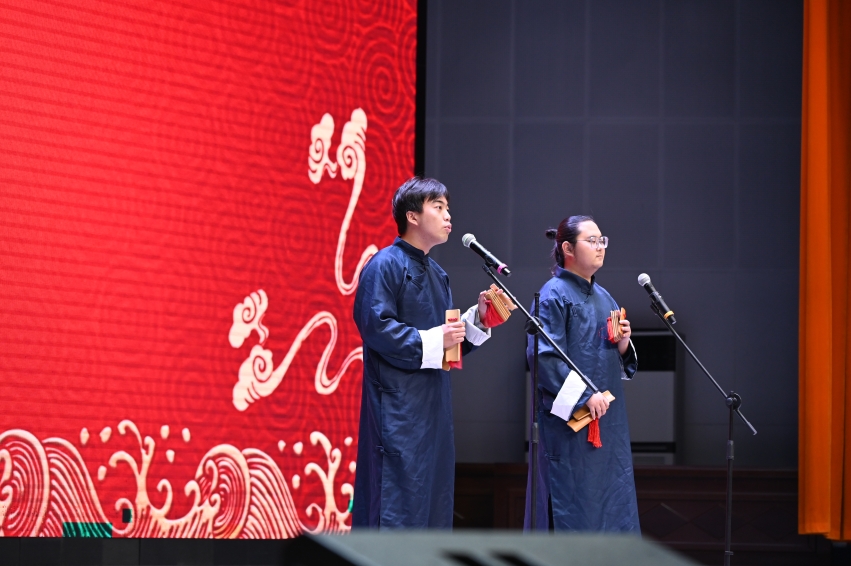 本次活动由邵阳学院图书馆联合学院学生工作部、团委等多部门主办,旨在通过经典诵读传承中华文化精髓,厚植师生文化自信。决赛现场,选手们以铿锵之声演绎《红岩·巾帼志》《诗意中国》等红色经典与时代篇章,或慷慨激昂,或深情婉转,将文字化为家国情怀的澎湃力量。评委团从语言技巧、情感表达等多维度现场评分,最终评选出获奖选手。活动现场穿插了街舞协会燃爆全场的开场舞,三言曲艺社精彩的快板表演《数来宝》,九歌汉服社的《雅韵华章》将活动推向高潮。